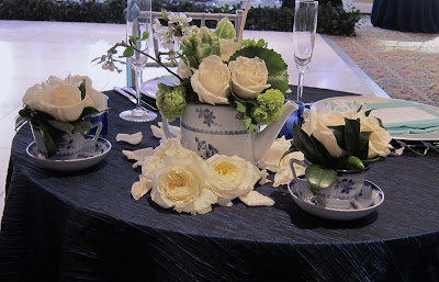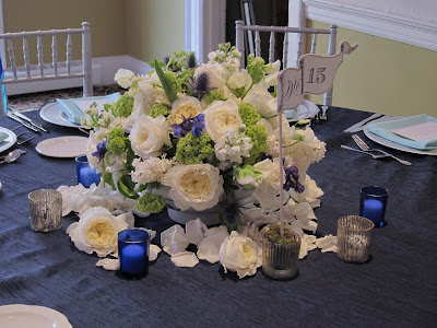 On Saturday Blush designed a blue white and green wedding in Hartford. The ceremony took place in the Old State House followed by a reception at the Hartford Club. The couple chose a May Day wedding theme for their May 1st nuptials. The event was coordinated by Candice of Jubilee Events. Featured flowers were Hydrangea, Garden Roses, Parrot Tulips, Lilacs and Delphinium in Mercury Glass containers and the brides’ family Spode China. Beautiful!