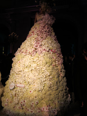 Following the Martha Party we headed over to the New York Library for The Knot Party! There was a enormous floral sculpture created by Preston Bailey of a bride designed after Monique Lhullier Gown, there were thousands of White Hydrangea, Phaelonopsis Orchids, Roses, it was Amazing!The Bride’s accessory was 2 white carnation poodles–notice the crystal leashes!!