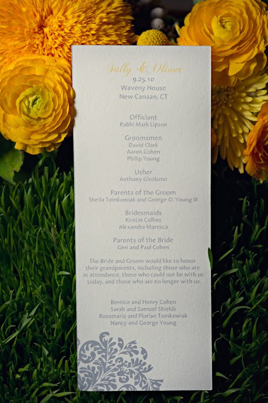 I just received the gorgeous pictures from Carla Ten Eyck of a wedding the studio designed the florals for in September at the Waveny House in New Canaan. This wedding went down as one of my favorites of the season. The golden yellows and soft silvers against all the dark wood in the Waveny House created a glowing effect. It was the most amazingly perfect day in September for a wedding! Candice and the staff of Jubilee Events styled the affair and designed the gorgeous paper goods.