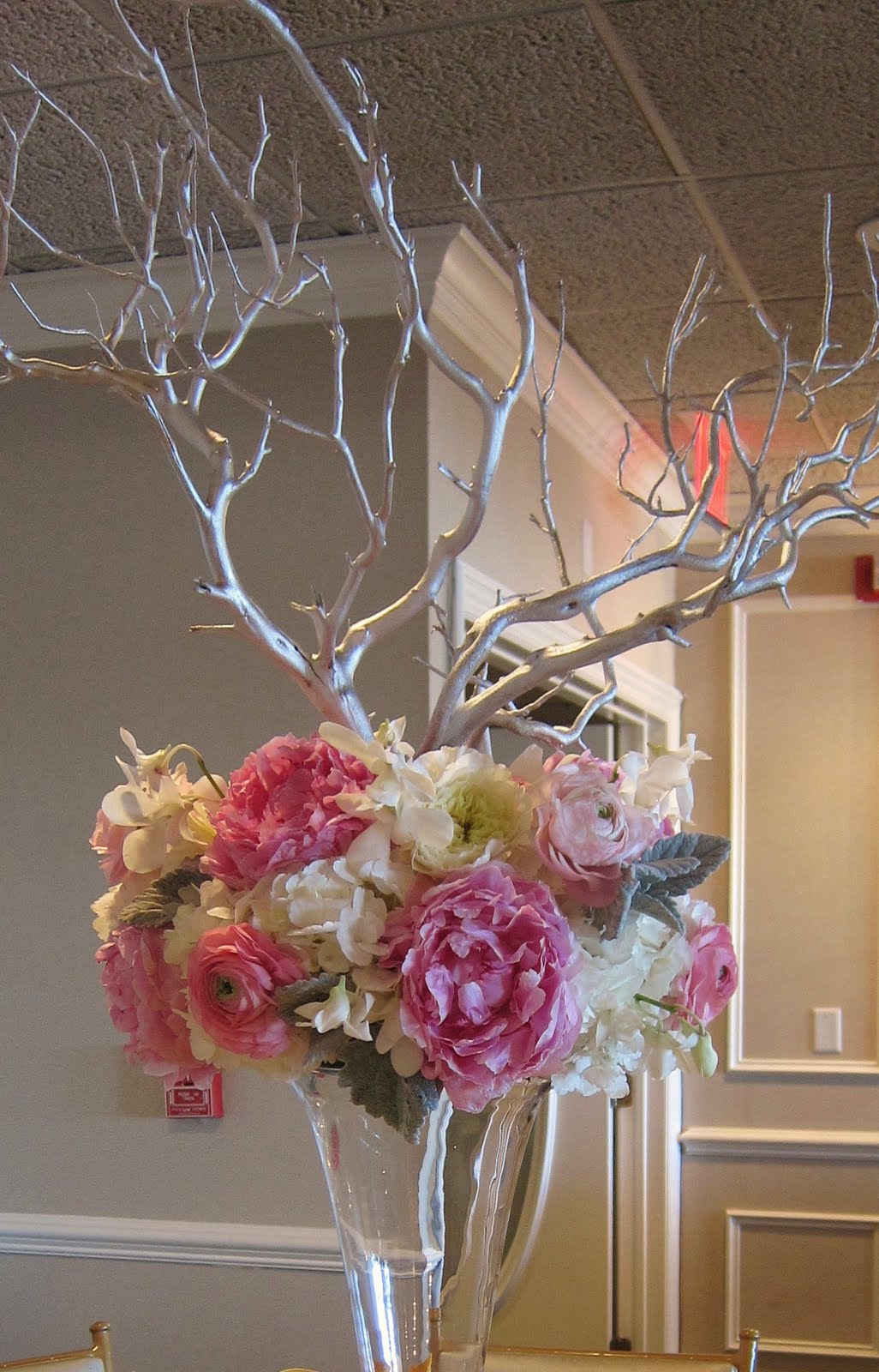 There is lots and lots of romance incorporated in the upcoming season at Blush! Soft pinks, dusty greens, big lush blooms spilling over vintage vases is the popular style for the upcoming season and we couldn’t be more excited! Lush garden style arrangements are some of our favorite types to design! Here are a few photos of a mock-up we designed this past week for one of our early Spring brides…A lush mounded centerpiece of Ranunculus, Peonies, Roses, Garden Roses, Dusty Miller and Andromeda sit on top of a vintage cake stand…