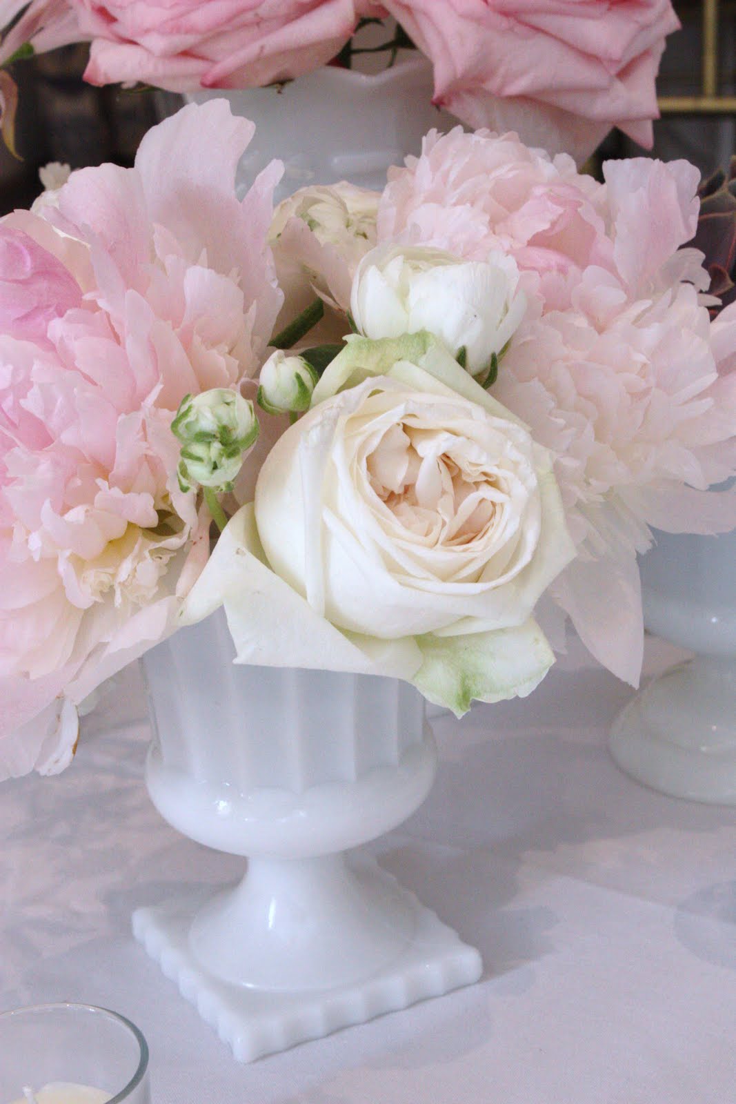 This past Saturday we designed a pink and white wedding at Wadsworth Mansion in Middletown. Candice and her talented team at Jubilee Events coordinated the beautiful event. The bride and groom’s milk glass collection was filled and scattered throughout the mansion and cocktail area. The stunningly simple cake (one of the prettiest I’ve seen) was made by Felicia’s Sweetface Pastry Shoppe I only had time to snap a few pictures, but will post more of this gorgeous bride and groom and the event as soon as I get some professional pics!
